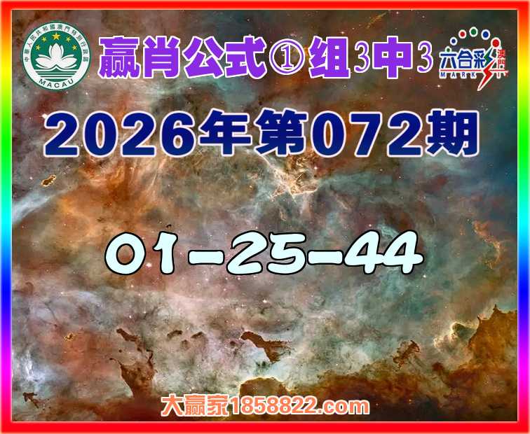 072期:『赢肖公式』 💎①组3中3💎【01-25-44